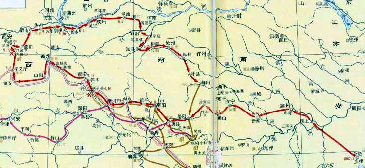 第二次西征陈玉成部进军路线图