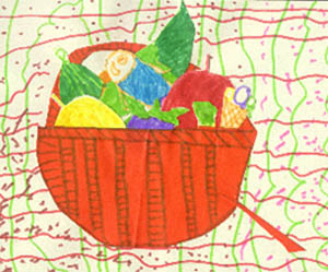 点击浏览详图 (相册号:23776) | | 标题:成长的足迹(12——阳阳画展)菜篮子(阳阳习作) | | 说明:这是阳阳自己想象中的菜篮子,那些鱼和蛋筒冰淇淋等都是他画好后,用剪刀剪下来,再粘贴着“放到菜篮子”里去的。这个“作品”,得到过老师的表扬,他很得意。 |