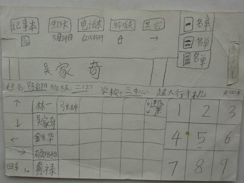 点击浏览详图 (相册号:37663) | | 标题:成长的足迹(7) | | 说明:说出来不怕您笑话,我在进学校前,没有在家练过字,全用图画表达意思。进了小学就不一样了,我不得不开始写字,而且还必须好好苦练,不然就帅不起来了! |