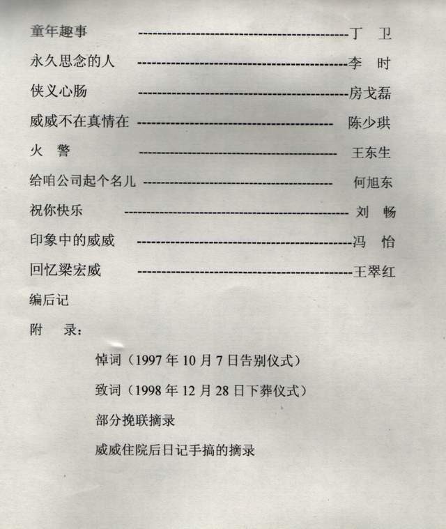 点击浏览详图 (相册号:37312) | | 标题:《往事如歌--回忆梁宏威》一书的目录2 | | 说明: |