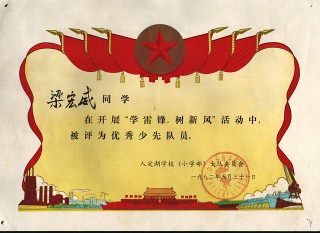 威威从小就好动,也很调皮,但学习倒不错,很快就加入了“少先队员”,还被学校评为“小虎子”、“优秀少先队员”、“三好学生”。