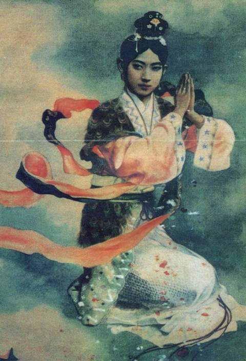 1918年,梅兰芳首演古装新戏《天女散花》成功后,徐悲鸿为其画的戏装像 |
