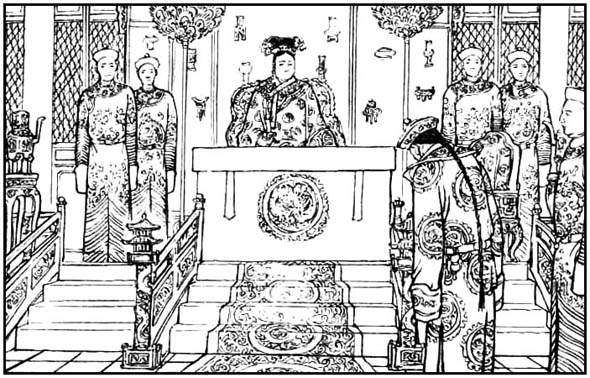 光緒隨慈禧一行人進東暖閣.這次慈禧並沒有坐她過去聽政坐的座位而坐上光緒的寶座.她衝著光緒破口大罵.